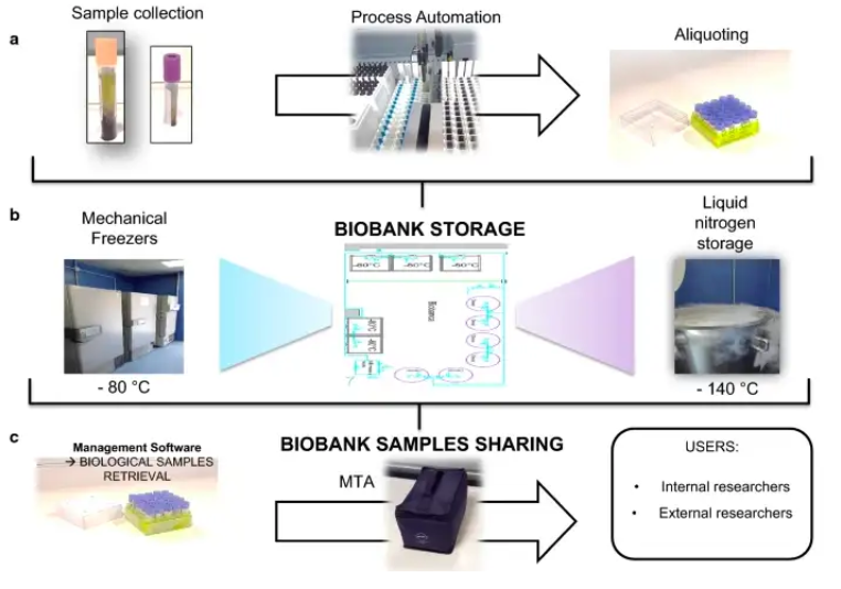 A biobank is known as a “biorepository”; a place that processes, stores and distributes biospecimens (such as blood or saliva samples) and their associated data for use in research.